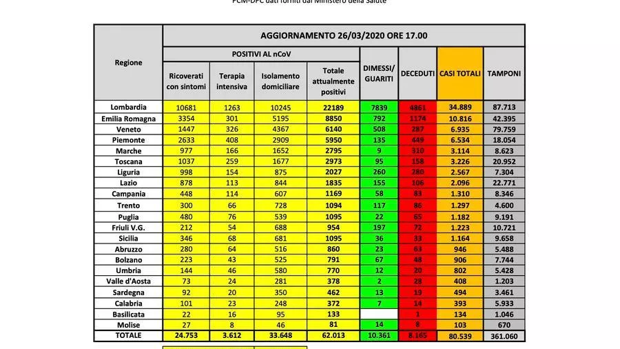 Ricordiamo che ormai da giorni non cala il numero dei nuovi contagiati.
