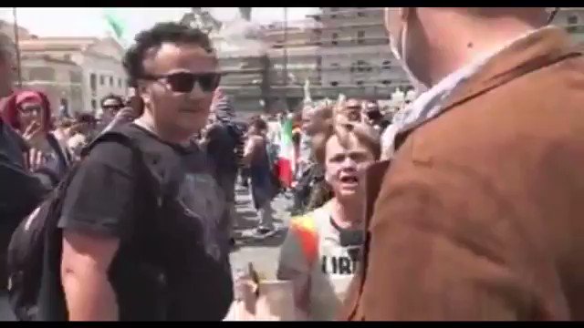 Piazza del Popolo 2 giugno 2020 un inviato di Tagadá viene respinto e aggredito dai giletarancioni…invita i manifestanti ad usare la mascherina..”ancora con sta mascherinaaaaaaaa ve la mettiamo sulla capoccia la mascherina”
