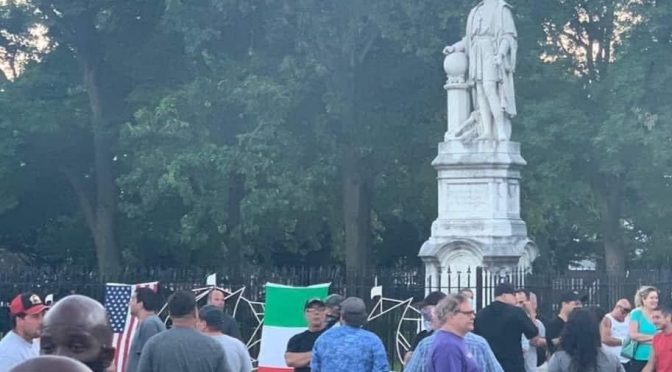 Patrioti italo-americani difendono la statua di #CristoforoColombo a #Philadelphia.#AntifaTerrorists pic.twitter.com/HG2paCsvZh
