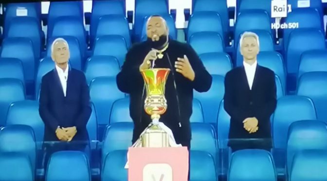 Pagliacciata inno antirazzista prima Finale Coppa Italia: esecuzione pietosa – VIDEO
