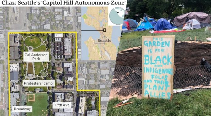 A Seattle, la zona occupata da antifa e BLM chiamata CHAZ, cambia nome divenendo CHOP e assolda uno studio legale con un avvocato per i cosiddetti diritti umani di quelli come in Italia finanziati da Soros.
