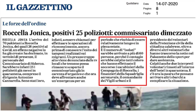 Qui parliamo di forse cento contagiati tra chi è entrato a contatto con i clandestini. Il giornale parla chiaro.