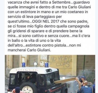 “Oggi si terrà a Genova l’ennesima manifestazione in ricordo di Carlo Giuliani e questo, come ogni anno, suona come una celebrazione della sua figura. E noi torniamo a ribadire che la morte di un giovane è sempre una tragedia, e che il lutto dei suoi familiari va rispettato, ma che non si può condividere né ammettere che si onori o si esalti l’immagine di una persona che ha perso la vita commettendo reati gravissimi. Non si può manifestare in suo nome indicandolo come esempio meritevole di un tributo. Carlo Giuliani non è un eroe né un martire, è e resta l’esempio di cosa non fare in alcun caso”.