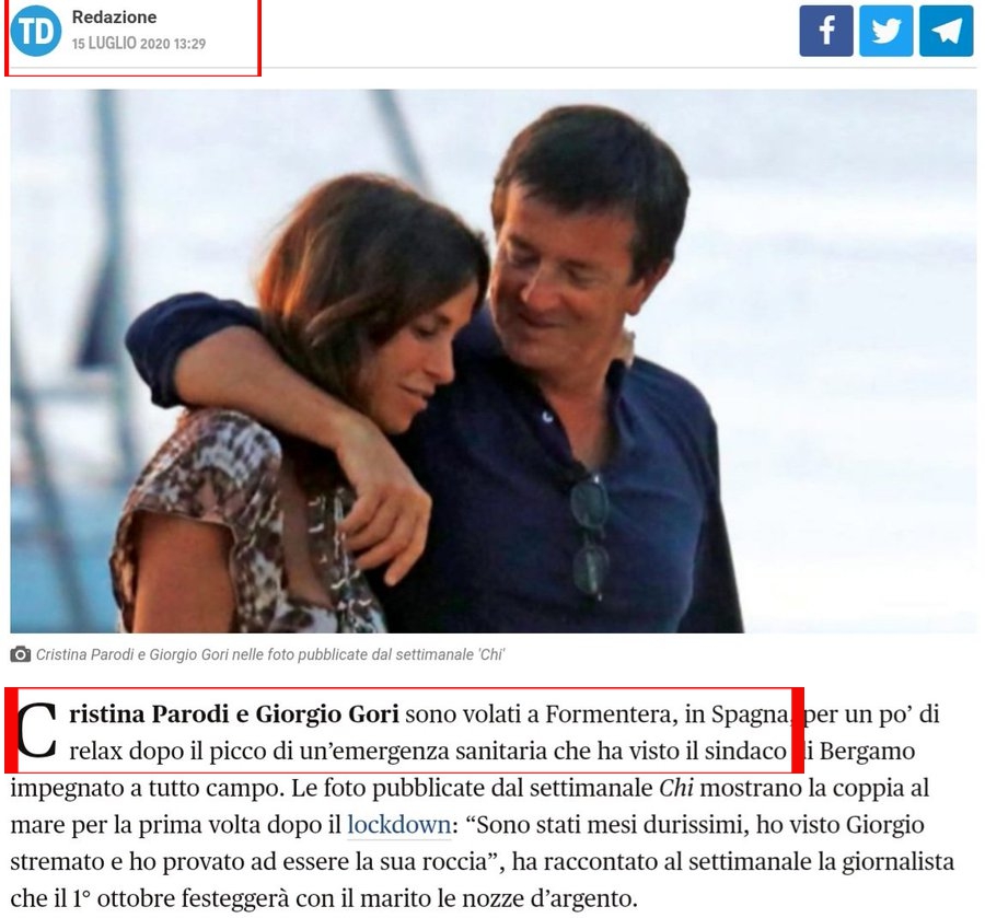 .@giornalettismo con Noi cascate male. Avete fatto un articolo dove sostenete che Giorgio Gori non è stato a Formentera 15 giorni fa. Basta visionare la rivista di Signorini "Chi" del 15/07/20 dove la Parodi confessa il viaggio. Siete cartastraccia. @AMorelliMilano #RadioSavana pic.twitter.com/4Dk9QPLMc6