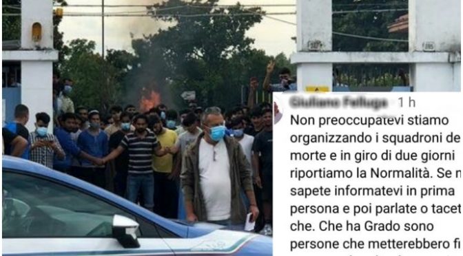 “Non preoccupatevi, stiamo organizzando gli squadroni della morte e nel giro di due giorni riportiamo la normalità… Quattro taniche di benzina e si accende il forno crematorio, così non rompono più”. È la soluzione promessa dal responsabile della Protezione civile di Grado per sedare le violenze che da ieri infiammano – in senso letterale – l’ex caserma Cavarzerani di Udine, dove 400 clandestini hanno innescato disordini – grida, pietre contro la polizia, roghi – per protestare contro la quarantena imposta dal sindaco di Udine, Pietro Fontanini (Lega Nord).