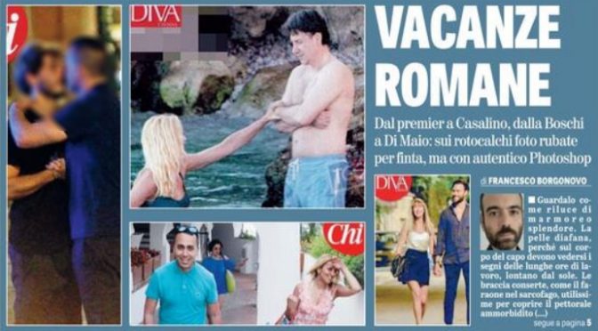 Dopo Gori, beccato a Formentera, loro sono stati costretti a vacanze italiane. Ma l’immagine di questi politici di governo che se la spassano stride con la realtà quotidiana di milioni di italiani. La maggioranza dei quali non potrà permettersela, nonostante il ridicolo bonus partorito dai mitomani al governo e che, visti gli 800mila cassintegrati ancora in attesa, gli hotel non vedranno chissà per quanto tempo come rimborso. Se mai lo vedranno.