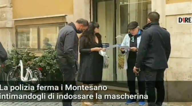 Confronto con le forze dell’ordine per l’attore Enrico Montesano, redarguito per non aver indossato la mascherina in piazza. L’attore, in compagnia della moglie, stava lasciando piazza Montecitorio, dove ha manifestato a favore di Chico Forti, italiano detenuto negli Usa, quando viene fermato. Agli agenti che lo invitano a indossare la mascherina, Montesano prova a opporre le sue ragioni, poi accetta l’indicazione. Poi di nuovo un battibecco con gli agenti, prima di allontanarsi definitivamente.