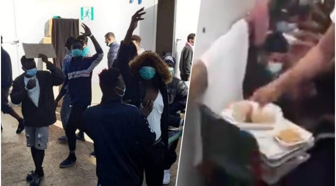 I #migranti a bordo di una delle navi quarantena (che costa ai contribuenti italiani un milione di euro al mese per la sola locazione) ieri hanno protestato contro la reclusione, il rimpatrio (che poi è solo un foglio di espulsione) e per il cibo non buono. pic.twitter.com/3b4vae0fhv