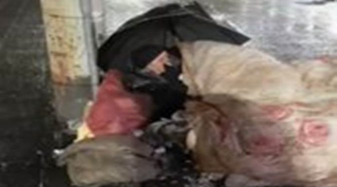 Se il video è di questi giorni, è ormai un anno che questa povera donna vive sotto un lampione:
