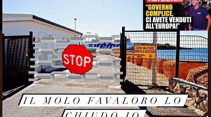 L’annuncio di Attilio Lucia, leader locale della Lega e vera anima identitaria dell’isola che chiama a raccolta gli isolani per chiudere fisicamente il porto dell’isola agli sbarchi.