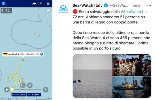 Sesto trasbordo effettuato dalla nave #SeaWatch4 di @seawatch_intl: ora sono presenti a bordo 455 #migranti.