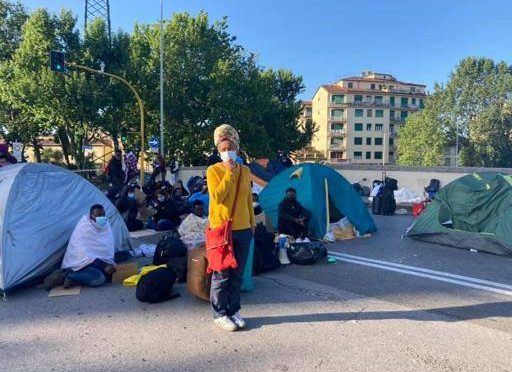 50 AFRICANI OCCUPANO PONTE A FIRENZE: “CE NE ANDIAMO SOLO DOPO CASE”, ACCONTENTATI – VIDEO