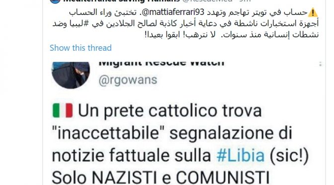 Casarini e la sua Ong, nonché il giornalista di Avvenire noto per avere diffuso falsi video di torture dalla Libia che, in realtà, arrivavano dal Brasile, minacciano chi fa informazione sui loro traffici in Libia e smentisce le fake news sui campi di tortura: