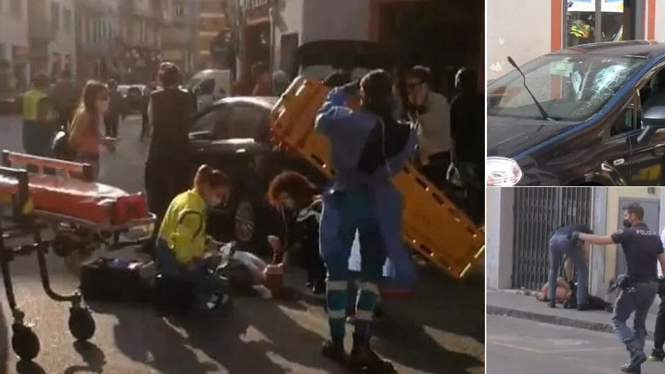 Camminavano in mezzo alla strada, urlando e litigand fra di loro, probabilmente ubriachi, forse fatti di qualcosa. Sicuramente fuori controllo. Uno dei due a torso nudo. Fatto sta che quando un anziano automobilista che voleva passare gli ha suonato, hanno dato inizio a dieci minuti di furibonda violenza. Prima si sono scagliati contro l’utilitaria dello sventurato settantenne, gli sono saltati sul cofano, gli hanno spaccato tergicristalli e parabrezza. Poi uno dei due giovani di nazionalità marocchina, quello senza maglia, ha infranto anche il finestrino e ha tirato fuori dall’abitacolo l’anziano terrorizzato. Colpendolo con calci e pugni e lasciandolo a terra. Per poi colpire alla testa con un cartello stradale un uomo che era accorso in soccorso. Quindi, da via Frosini, hanno proseguito lungo via Vittorio Veneto, tirando cazzotti sulle auto e a chi si trovavano davanti, lanciando cartelli stradali e bottiglie di vetro. VERIFICA LA NOTIZIA