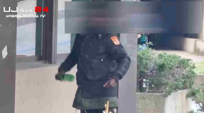 «Questa persona – riferisce una commerciante – è stato visto parlare da solo e in alcune occasioni ha importunato i passanti. A dare l’allarme è stata proprio lei, da noi poi intervistata e che ha che richiesto l’intervento delle pattuglie della polizia locale di Perugia. Sul posto sono arrivati quattro agenti, al seguito della comandante Nicoletta Caponi, i Carabinieri di Perugia, con due uomini, e l’Esercito Italiano della caserma Gonzaga di Foligno con quattro militari».