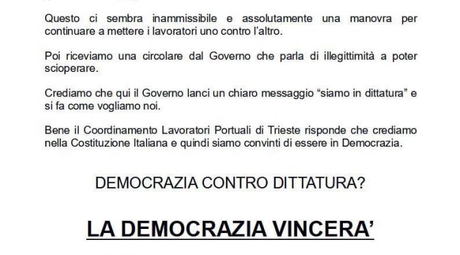 Nuovo comunicato dei #portualitrieste: “La democrazia vincerà”.