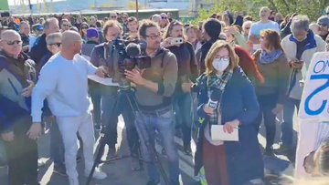 Troupe della televisione di Stato cacciata dal porto di Trieste. Hanno appositamente posizionato la telecamera verso un punto morto lasciandosi alle spalle la marea umana: "Dite la verità! Terroristi!" Questa è la prova che in televisione raccontano solo quello che vogliono loro! pic.twitter.com/NaRYRnIBf2