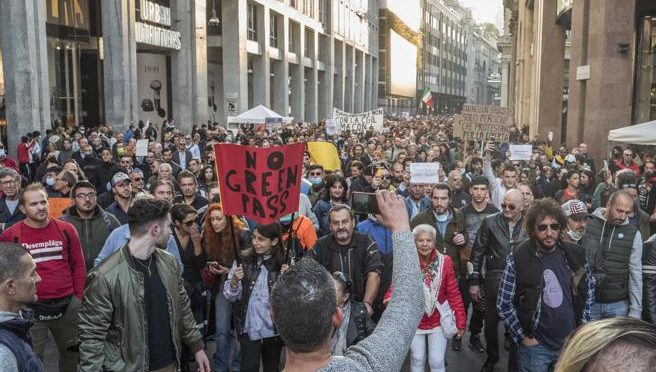 A Milano, il corteo, non autorizzato, ha marciato da piazza Fontana diretto verso piazza Duomo al grido di «Libertà». La sede della Rai, in corso Sempione, è stato l’obiettivo della manifestazione. Che sta sfilando con tanto di fumogeni per le vie del centro. Molti gli striscioni e i cartelli contro il sindacato. «Landini babbeo il … Leggi tutto Centomila in marcia a Milano contro governo e Cgil: “L’Italia siamo noi” – VIDEO