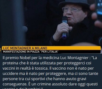 Il popolo No Vax si è riunito questo pomeriggio in piazza XXV Aprile a Milano per partecipare all'evento organizzato da Italexit di Gianluigi Paragone : ospite d'eccezione il premio Nobel Luc Montagnier ⬇#novax #Montagnier pic.twitter.com/hOs4RYOWrV— Mi-Tomorrow (@MiTomorrow) January 15, 2022