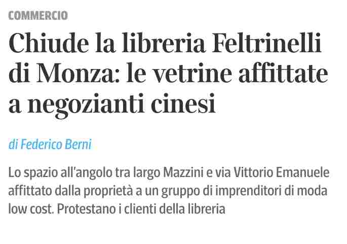 6 pensieri su “Feltrinelli chiude libreria e affitta vetrine a cinesi low-cost”