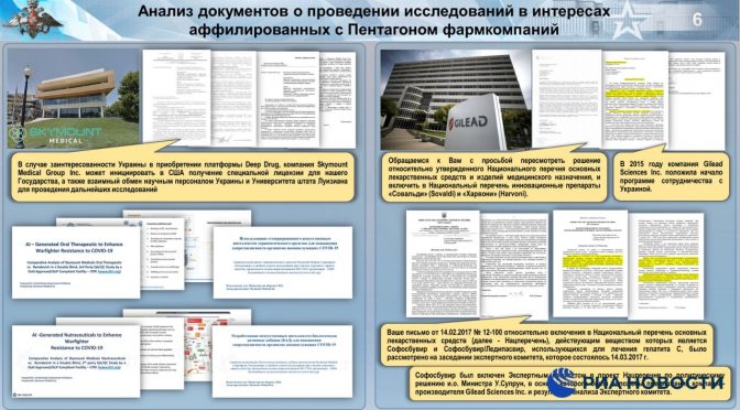 Come già riportato dal Ministero della Difesa russo, gli Stati Uniti hanno speso più di cento milioni di dollari per il lavoro dei laboratori biologici in Ucraina, che hanno partecipato al programma biologico militare americano e si sono occupati, in particolare, di agenti patogeni della peste e dell’antrace.