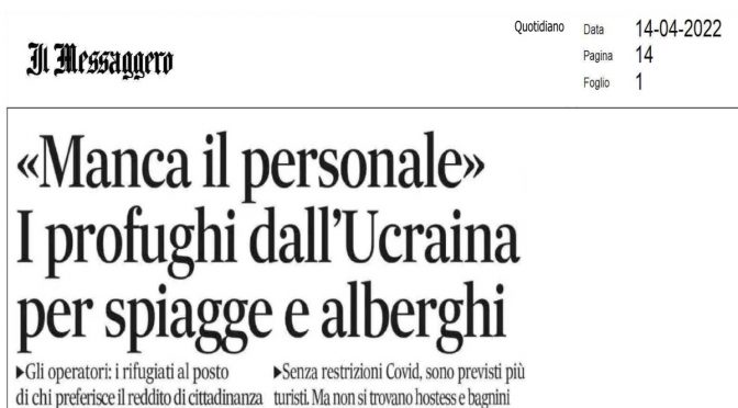 Solito delirio. Certo, mandiamo i bambini ucraini a fare i bagnini. Ogni scusa è buona per sostituire i lavoratori italiani e togliere loro i diritti.