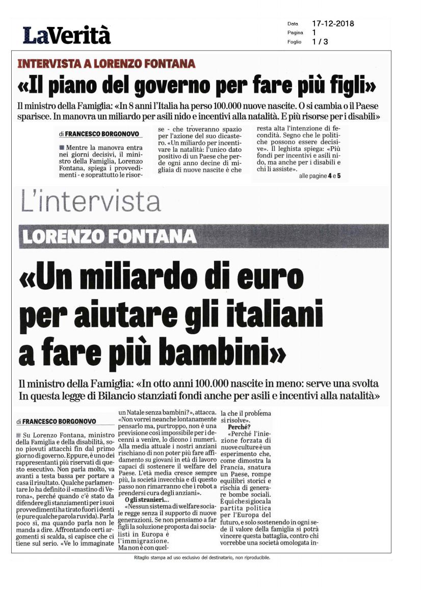 “Quando dici che bisognerebbe aiutare i nostri giovani ad avere più figli ti danno del fascista. Ci sono altri che dicono ‘avanti con l’immigrazione’. Ma nessuno di questi ultimi si è reso conto che con l’immigrazione si diluiscono le identità e l’omologazione avanza”. Lo ha detto il ministro per la Famiglia e le Disabilità, Lorenzo Fontana, alla Scuola di formazione politica della Lega. “La battaglia che bisogna fare è questa”, ha quindi aggiunto.