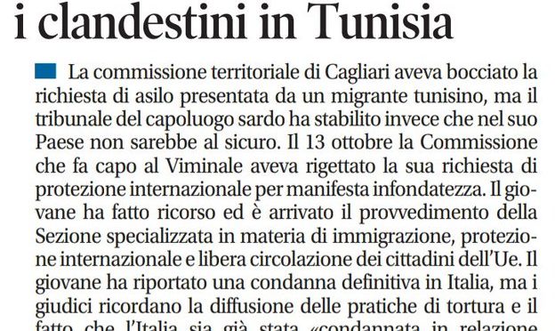 Tunisino con condanna definitiva in Italia non può essere espulso perché “la Tunisia non è un porto sicuro” per le pratiche di torture.