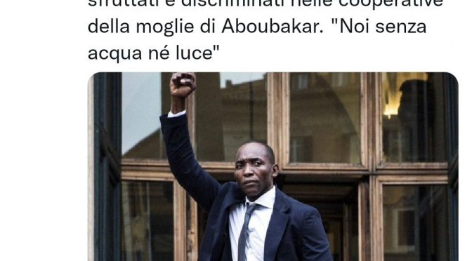 Via i Soumahoro dall’Italia. ⚠️ L'indagine dei carabinieri sui minorenni sfruttati e discriminati nelle cooperative della moglie di @aboubakar_soum: "Noi senza acqua né luce" #migranti pic.twitter.com/YYQe1RrMin — Francesca Totolo (@fratotolo2) November 17, 2022 Questi fanno soldi sfruttando altri africani. E il Pd li porta in Parlamento abusivamente. Vox Le coop di Aboubakar Soumahoro sono nell’occhio … Leggi tutto “Nella coop dei Soumahoro bambini africani sfruttati”