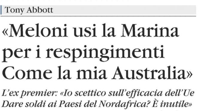 «Noi abbiamo provato a parlare a lungo con l’Indonesia senza ottenere risultati e potrebbe [perché il condizionale?] avvenire lo stesso con i paesi del Nord Africa. Spesso il problema di questi paesi è la corruzione e la collusione tra la politica e i traf ficanti. Il rischio è che se gli diamo soldi ne chiederanno sempre di più senza risolvere il problema»