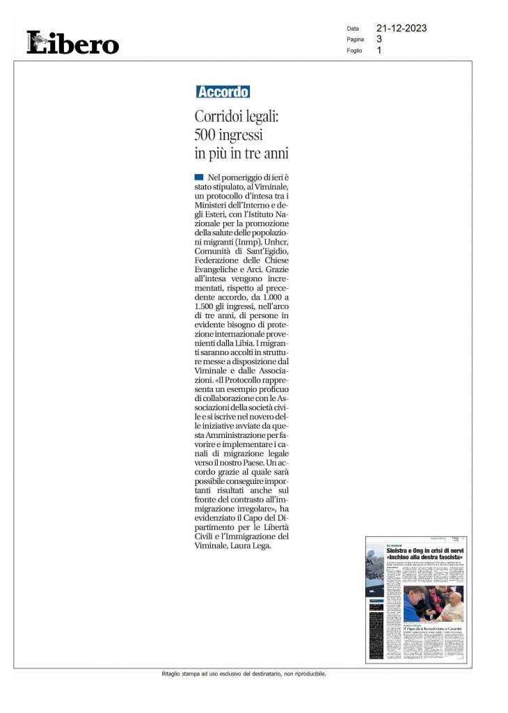 Non solo. Firma accordi con organizzazioni nemiche degli italiani per andarne a prendere altre migliaia in Libia, Libano e altri Paesi. Sant’Egidio, tra le altre cose, è finanziato dalla Germania per trattenere in Italia i clandestini che le ong tedesche sbarcano in Italia: