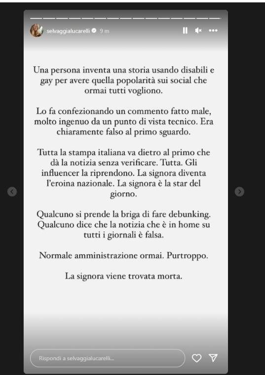 3) paladini social di quelle categorie si risentono per la concorrenza e svergognano la signora denunciando trattasi di fake.