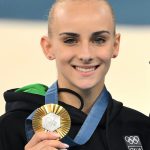 Gold medalist Alice D’ Amato of Italy poses on the podium for the Women Balance Beam final of the Artistic Gymnastics competitions in the Paris 2024 Olympic Games, at the Bercy Arena in Paris, France, 05 August 2024.ANSA/ETTORE FERRARI